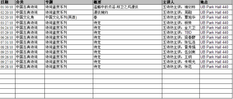 | (玉诗坊月末诗社时间一般安排在每月最后一个星期六。如有临时变化,玉诗坊会提前一周在本页通知,请随时关注) |